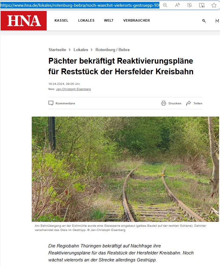Motivations-Artikel zum Stand der Reaktivierung der Kreisbahnstrecke