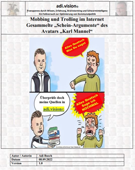 "Hommage" an die Aktivitäten und Beiträge des AVATAR "Karl Mannel" in der ursprünglichen Version. Meine Art mit dem MOBBING umzugehen war und ist es, den AVATAR bzw. TROLL als das armselige Wesen darzustellen, was er ist, mich über ihn lustig zu machen und das auch öffentlich zu machen.