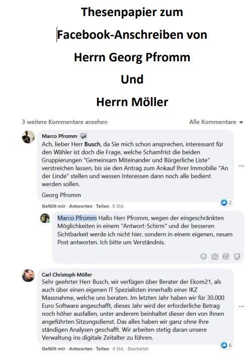 Facebook Aussagen von Herrn Vorstand Georg Pfromm (SPD) und BM Möller